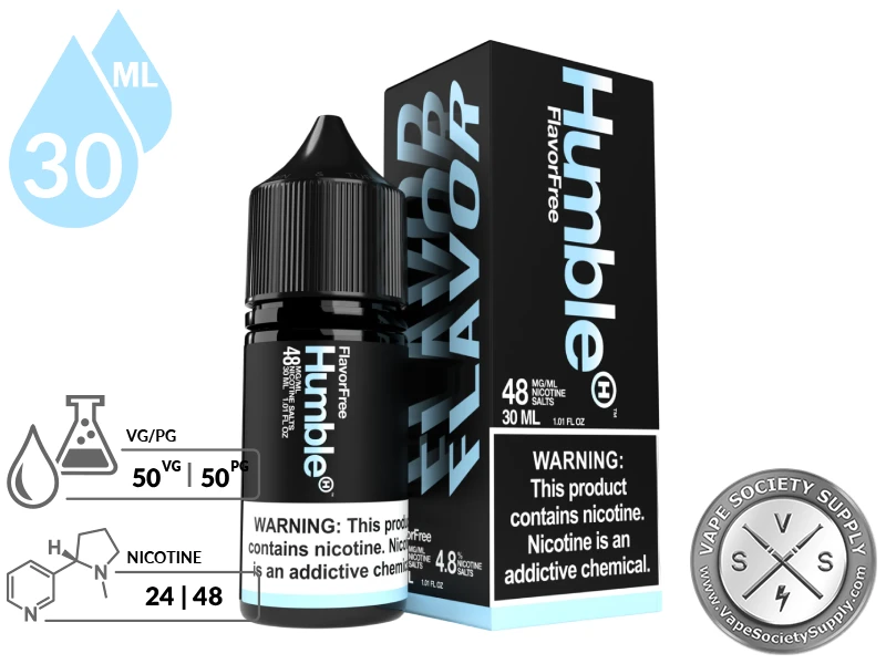 - 1 x 30ml bottle of Flavor Free HUMBLE SALTS TFN