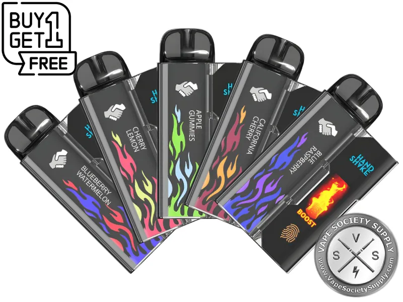 The first thing you will notice about the North HandShake Starter Kit 15K Puffs is how it boasts an elegant and ergonomic design that fits comfortably in the hand, with or without the Smart Power Pack Battery. The North HandShake Pod is crafted from high-quality materials, so it can withstand frequent usage, and it even has a sleek finish and awesome fiery looking image, coupled with what the flavor profile is and that tiny “handshaking” image. Think of it as a range of elegant colors to suit your personal taste. Plus, this draw-activated system’s compact size ensures immense portability, making it an ideal companion for on-the-go vaping, since it can be placed in one’s pocket, purse, or bag compartment. And lets not forget the duckbilled clear mouthpiece which really makes every pull a smooth and satisfying one to take at that.