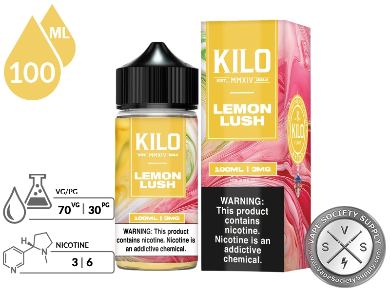 - 1 x 100ml bottle of Lemon Lush KILO E-Liquids