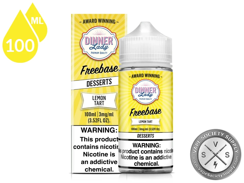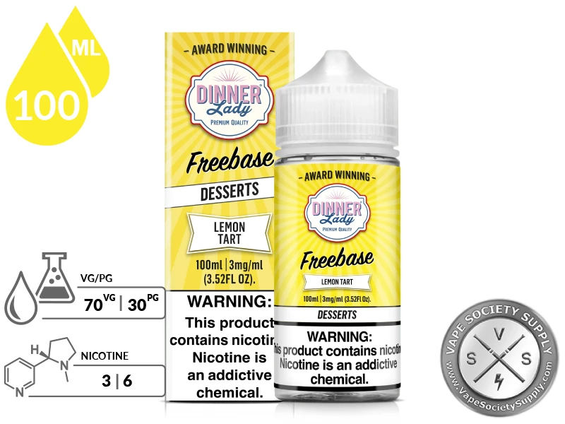 Lemon Tart vape juice from DINNER LADY arrives in a large bottle while giving vapers the chance to chase some even more delectable clouds of vapor, due to having a 70/30 VG/PG base.