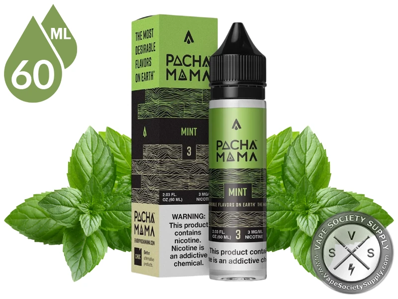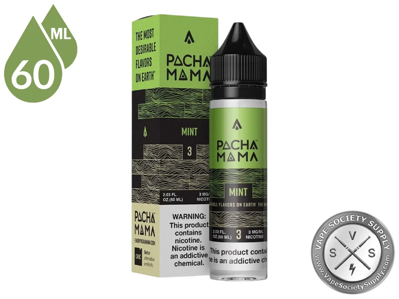 Mint vape juice from PACHA MAMA comes in a medium-sized bottle and supplies a crisp-like cloud chasing base of 70/30 VG/PG that vapers can surely appreciate.