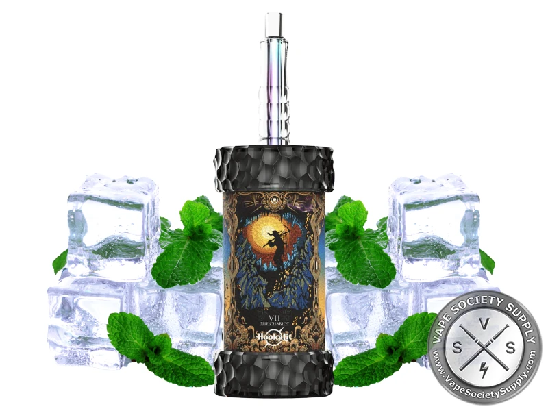 In place of a cumbersome hose, the device features a long, slightly thin-shaped straw that serves as the conduit to your experience. It is crowned with an ergonomically designed duckbilled mouthpiece that allows for wonderfully smooth and satisfying pulls. This entire component is a work of art in itself, featuring an inner vibrant stem that is fully visible through a crystal-clear plastic exterior, adding a layer of depth and a pop of color to the sophisticated design. This vessel also boasts an incredible 2-in-1 versatility; it can be used as a magnificent standalone disposable e-hookah for portable sessions or, in a brilliant stroke of engineering, it can function as a hookah head for traditional hookahs, bridging the gap between ancient ritual and modern convenience. The artistry of the Olit HookaLit Mega extends to its finest details, creating an immersive and aesthetically pleasing appeal that is second to none. At the bottom of the device, the company name “Hookalit” is displayed in bold white letters, a subtle yet confident mark of quality that grounds the mystical design with a seal of innovation.
