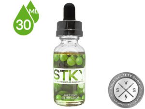 Green Apple vape juice from STKY comes in a 30 ml dropper bottle for wasy pouring. It has a 70 percent vegetable glycerin (VG) and 30 percent propylene glycol (PG) base, satisfying you with a solid throat hit and fluffy, dense, and huge vape clouds.