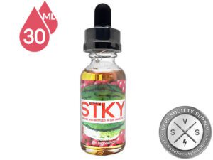 Melon vape juice from STKY Liquids comes in a 30ml bottle with a dropper cap. It has a 70 percent vegetable glycerin (VG) and 30 percent propylene glycol (PG) base, ensuring big, fluffy clouds and a solid inhale.