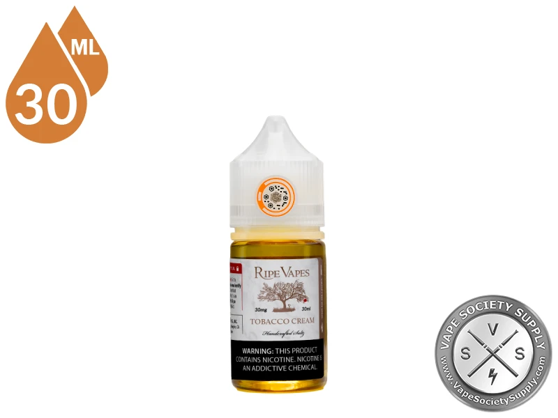 - 1 x 30ml bottle of Tobacco Cream Ripe Vapes Handcrafted Salts