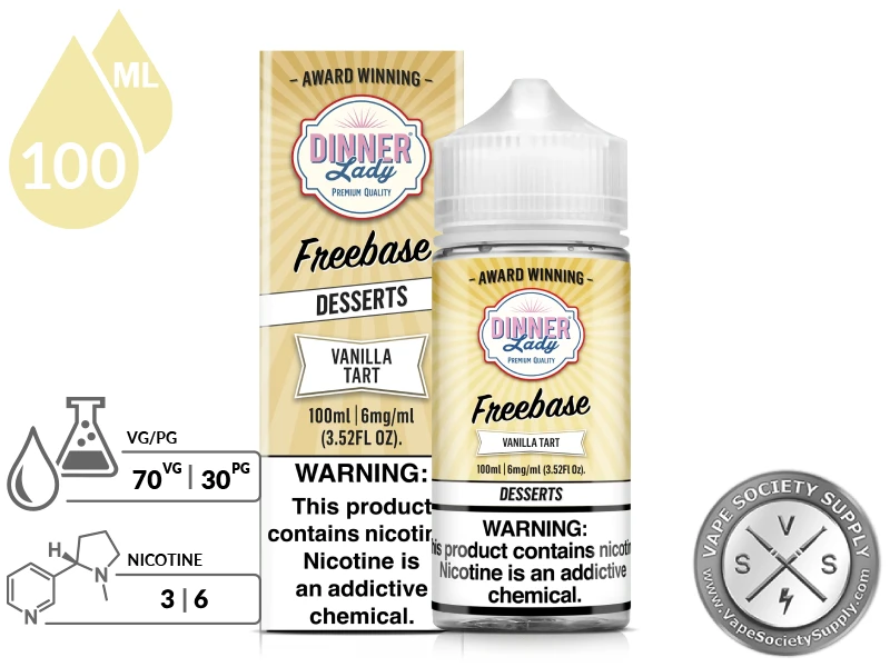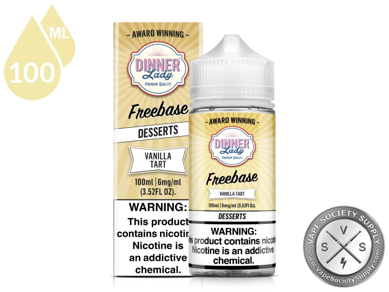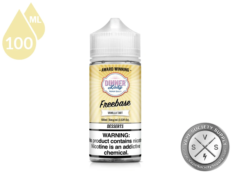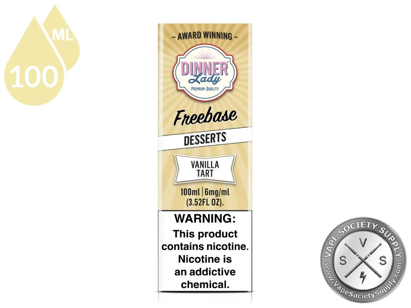 Vanilla Tart vape juice from DINNER LADY arrives in a large bottle while providing vapers the opportunity to chase some even more delectable clouds of vapor, due to having a 70/30 VG/PG base.