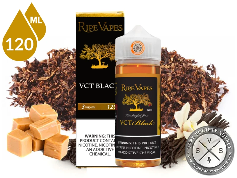 - 1 x 120ml bottle of VCT Black By Ripe Vapes E-Liquid